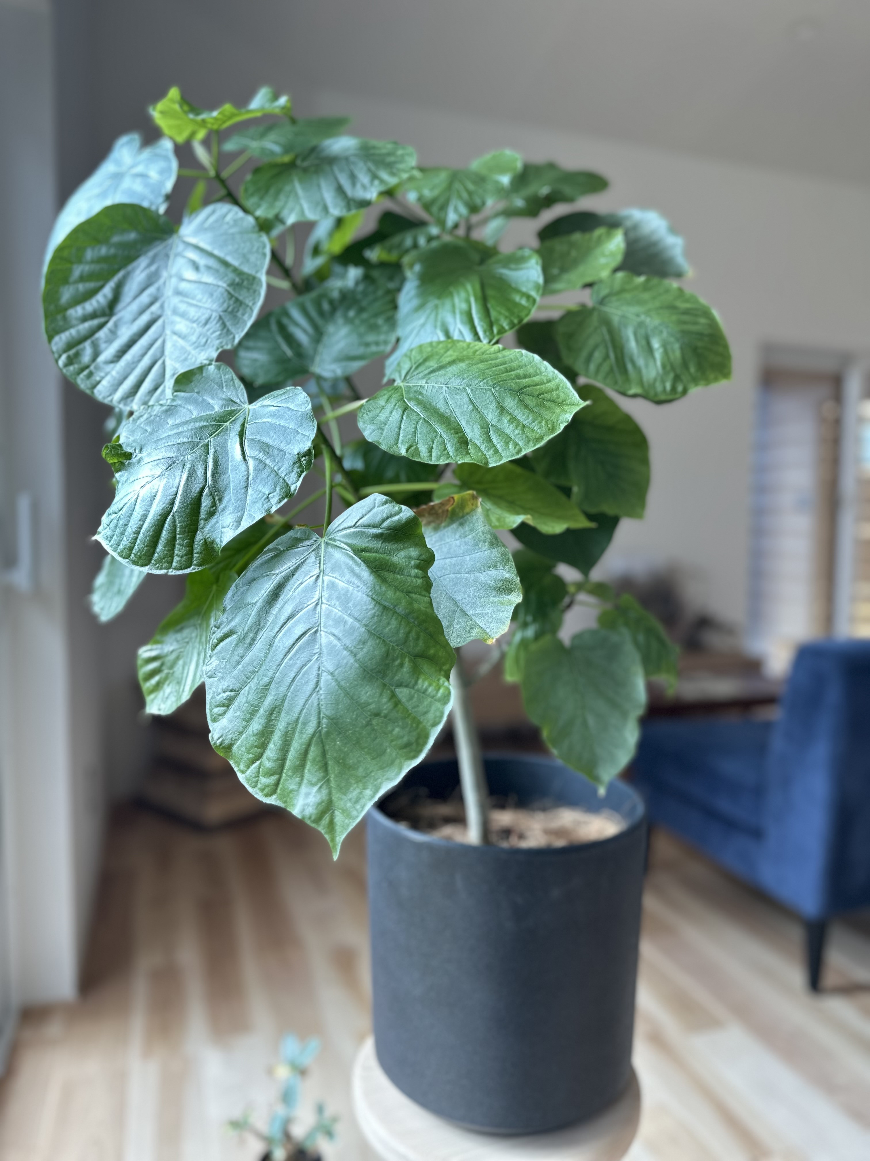 写真の観葉植物(ウンベラータ)はモデルハウスのお祝いで